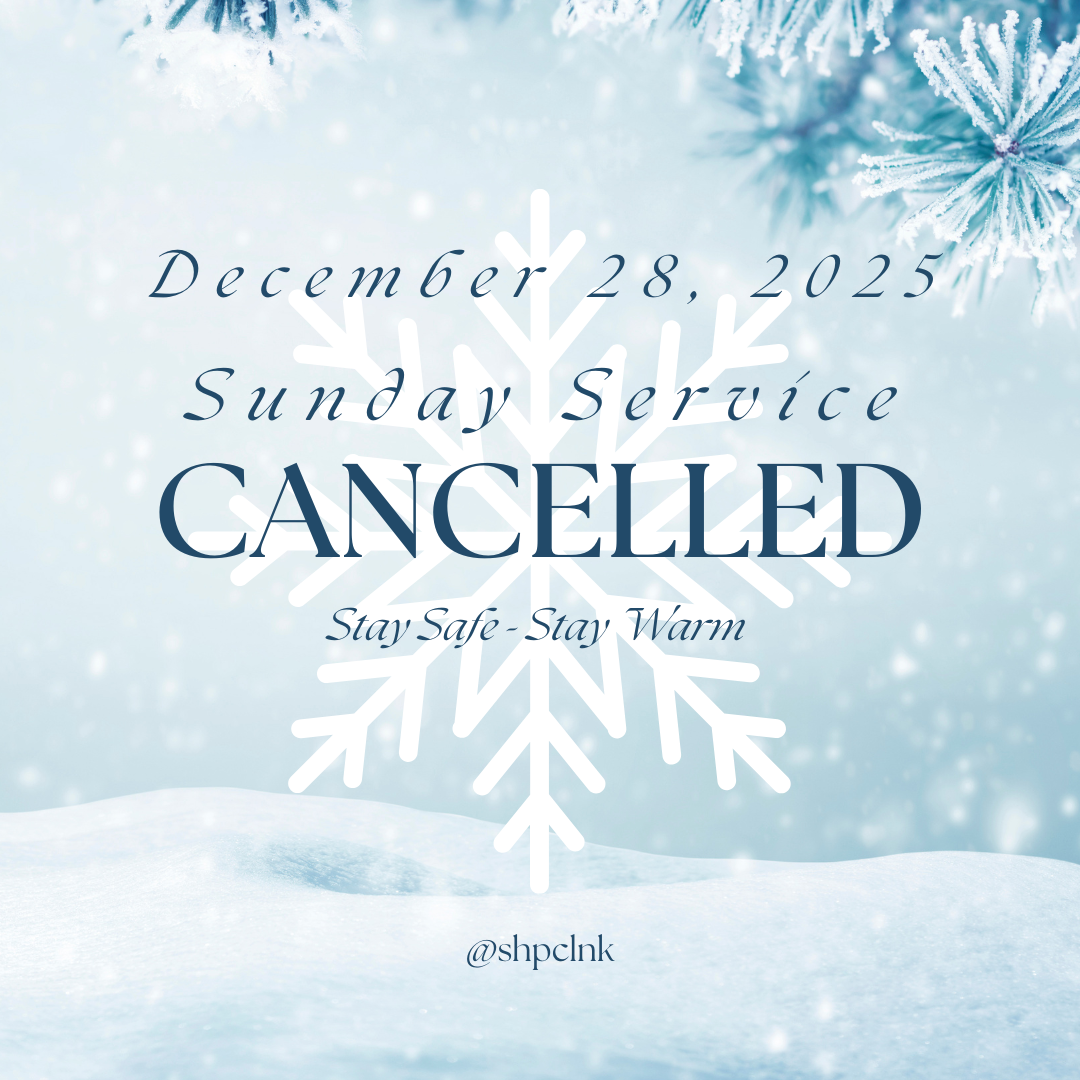 Due to the predicted severe winter weather - church is cancelled for December 28, 2025 We look forward to seeing you again soon! Be safe, be well, be warm.